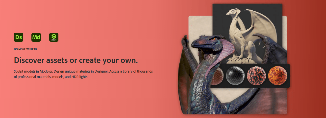 - Amplia biblioteca de recursos 3D: acceda a miles de modelos, materiales y luces personalizables con Substance 3D Assets. 📚
